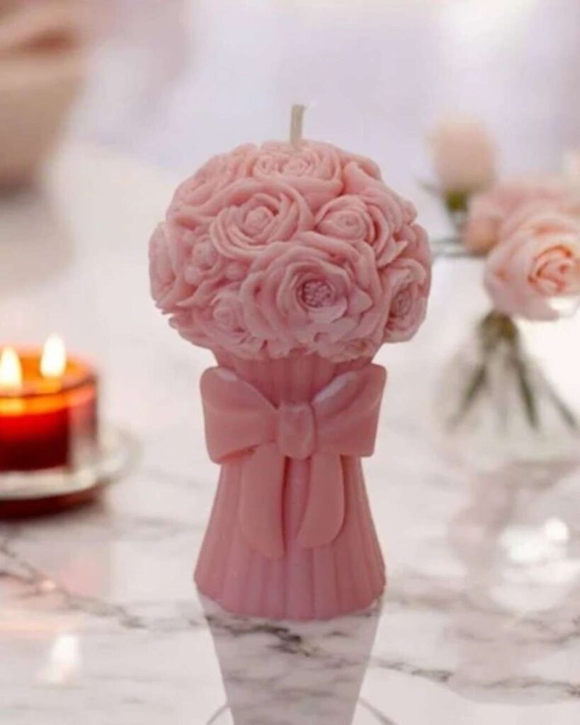 The Rosy Bloom Candle is a true symbol of elegance and warmth. Shaped like a delicate bouquet of roses tied with a ribbon, this candle adds a romantic and classy touch to any space. Much like Yankee Candles or Goose Creek Candles, it combines beauty and charm, making it perfect for gifting or simply brightening up your home.