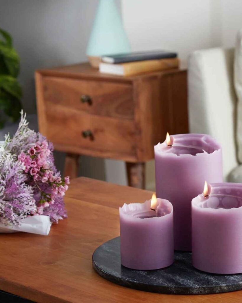 Fill your room with peace and warmth using these Lavender Calm pillar candles. Their soft purple shade and gentle glow create a cozy and inviting vibe that’s perfect for relaxing evenings or quiet mornings. These scented candles not only look stunning but also bring a calming fragrance that helps you unwind after a long day.