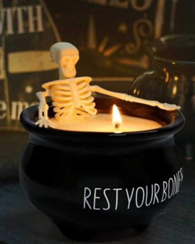Add a spooky yet fun touch to your decor with the Rest Your Bones Halloween Candle. This quirky scented candle comes in a black cauldron-style holder, featuring a tiny skeleton relaxing in the wax. It’s the perfect mix of eerie and adorable, making it a great pick for Halloween parties or cozy autumn nights.