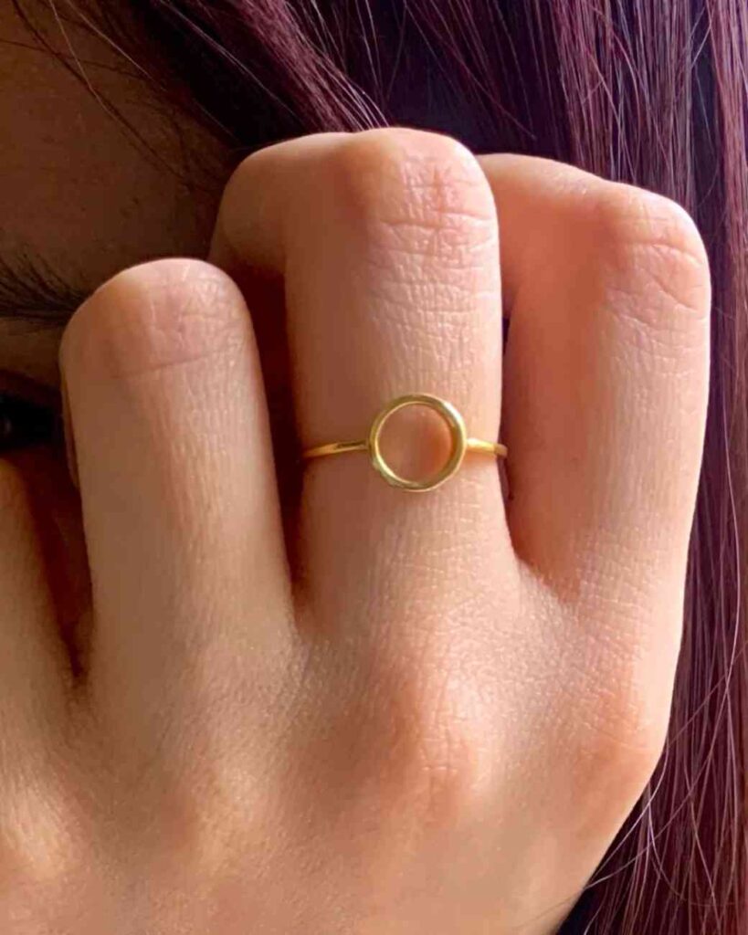 Along with its sleek style, the open circle design can even work as a unique engagement ring for someone who prefers something subtle instead of a traditional diamond ring. It also pairs well with stackable wedding rings, letting you mix and match without losing that minimal aesthetic. Its simplicity makes it a sweet pick for promise rings too.