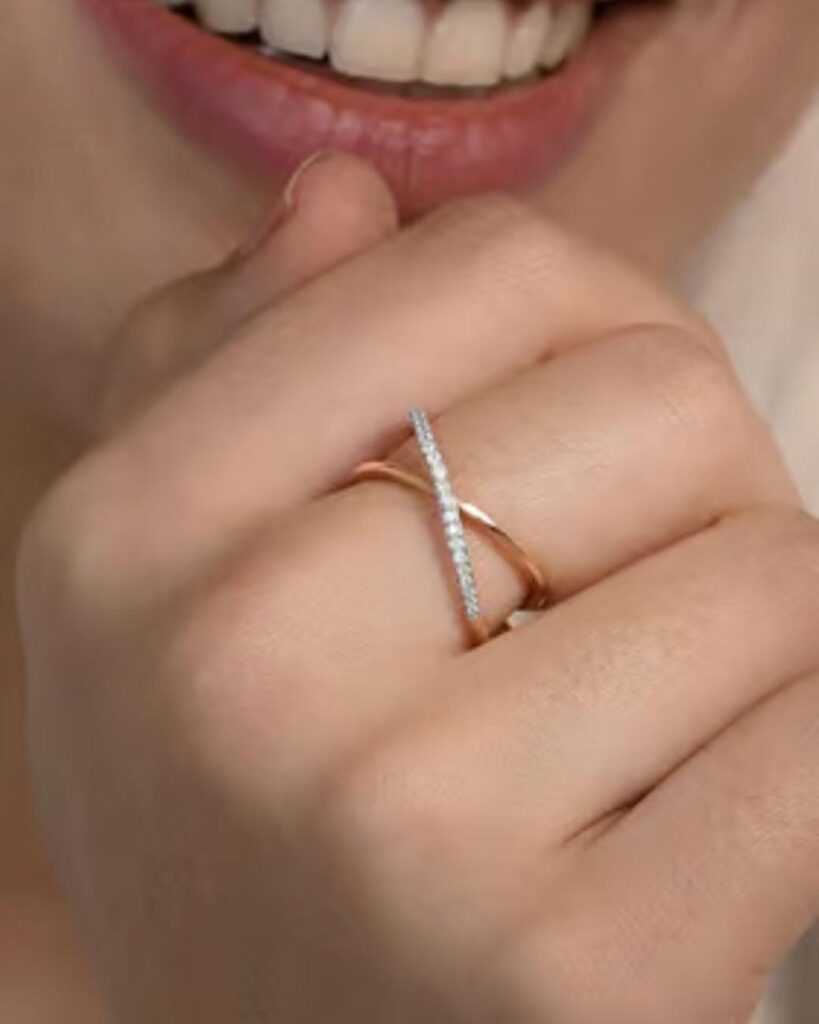 Plus, if you are searching for a modern engagement ring, this design is such a cute and fresh option. The slim diamond bar gives it the charm of a diamond ring and it can also fit the vibe of diamond engagement rings, promise rings or even aura rings. It’s great for people who want something meaningful but not too heavy or traditional.