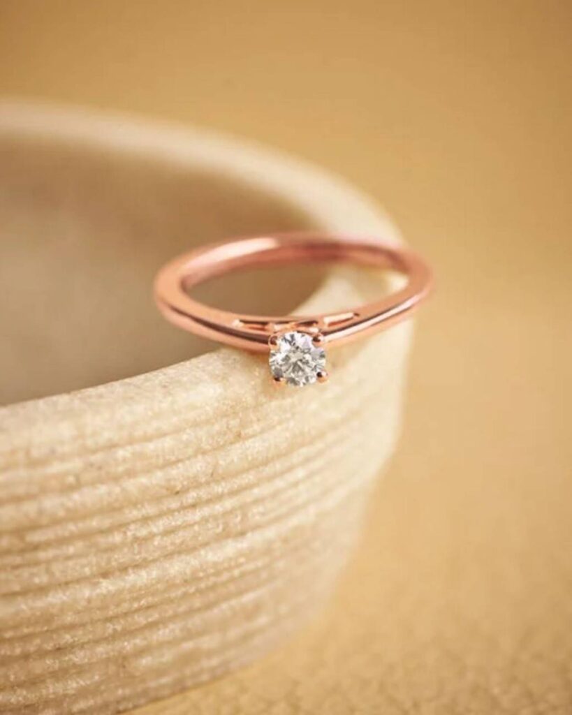 Building on its charm, it also works beautifully as an engagement ring or as part of a wedding ring collection. The classic solitaire design symbolizes pure love and commitment, while the rose gold finish adds a warm, romantic touch that suits every skin tone. It quietly captures attention in the most graceful way.