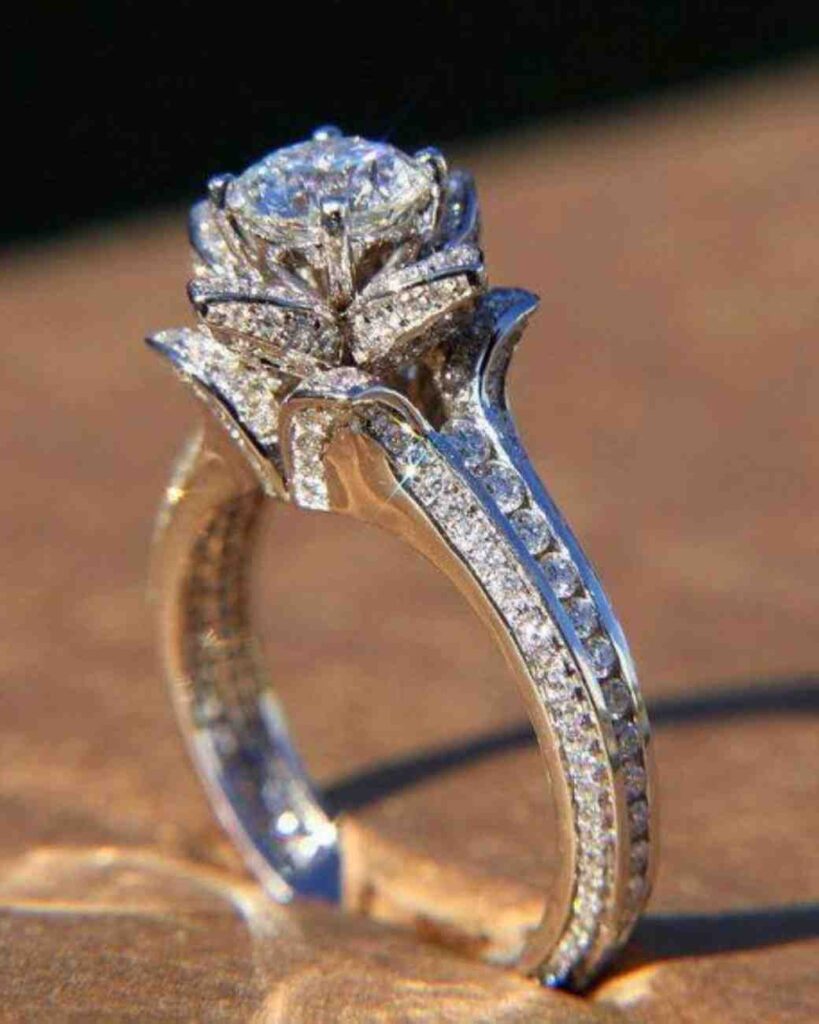 The gorgeous Blossoming Diamond Ring is designed like a blooming flower, making it one of the most eye-catching rings you’ll ever see. The petals are lined with tiny diamonds that highlight the big center stone, giving it a bright and royal look. It feels special the moment you see it, almost like it was made for a once-in-a-lifetime moment.