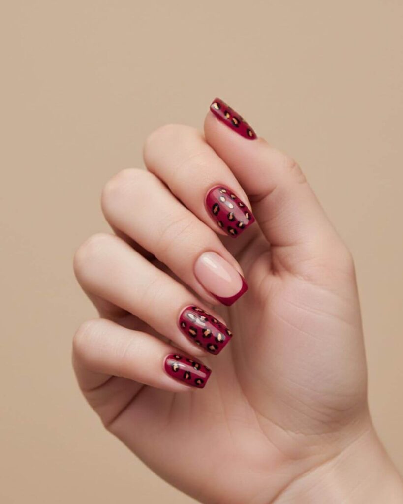 This Red Leopard Nail look is such a confident booster. The deep red base already feels bold but the leopard print detail takes it to a whole different level. I have tried red leopard nails before when I wanted something fun but still put together and honestly, they always get compliments.