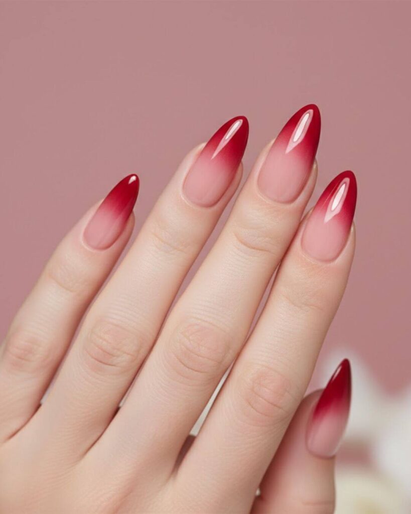 The Red Ombre Nails feel effortlessly elegant and clean. What makes this look special is how wearable it is. If you are searching for Almond Red Nails, Red Ombre Nails or Classy Nail Design, this style checks all the boxes. It suits casual outfits, formal occasions and even special events like weddings or parties.