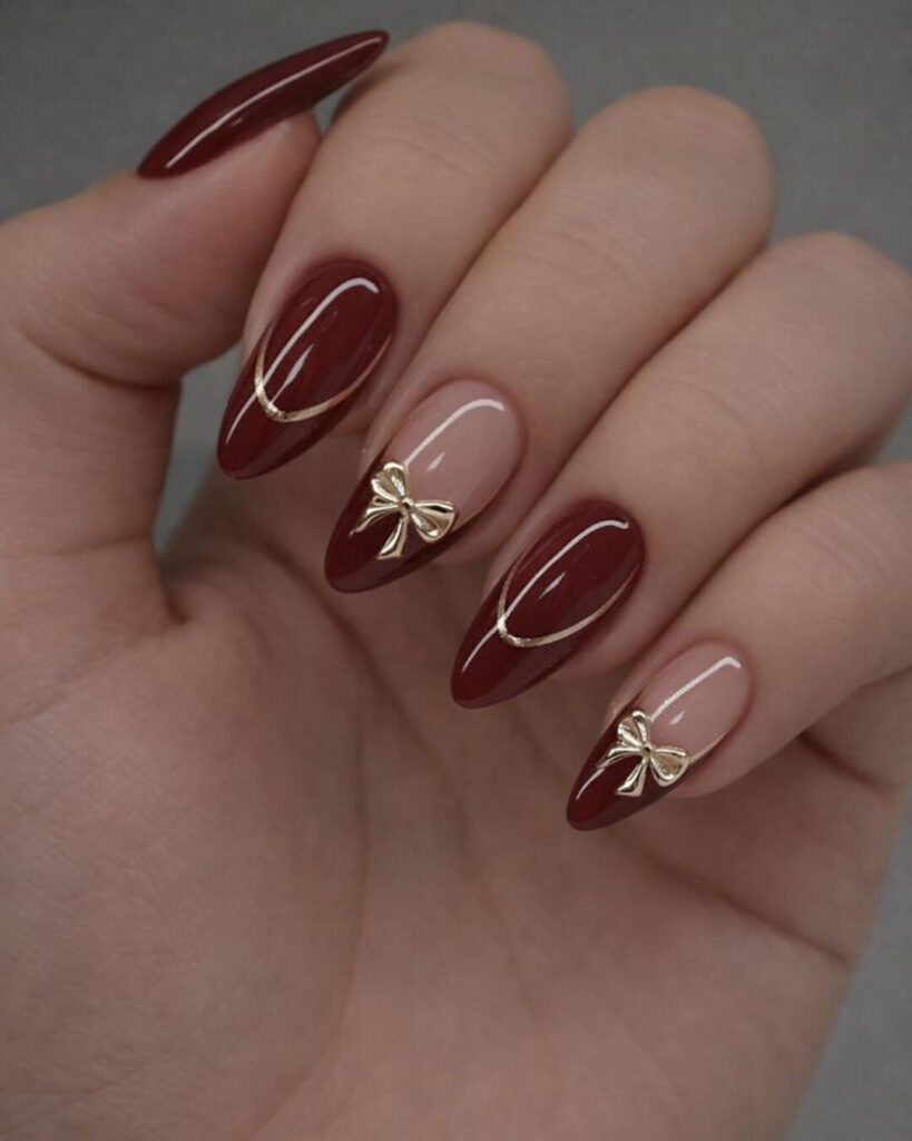 The delicate bow inspired nail art and tiny gold accents add personality without overpowering the look. This is the kind of red nail style that quietly stands out and feels thoughtfully done. It fits perfectly for any nail design that still feels premium.